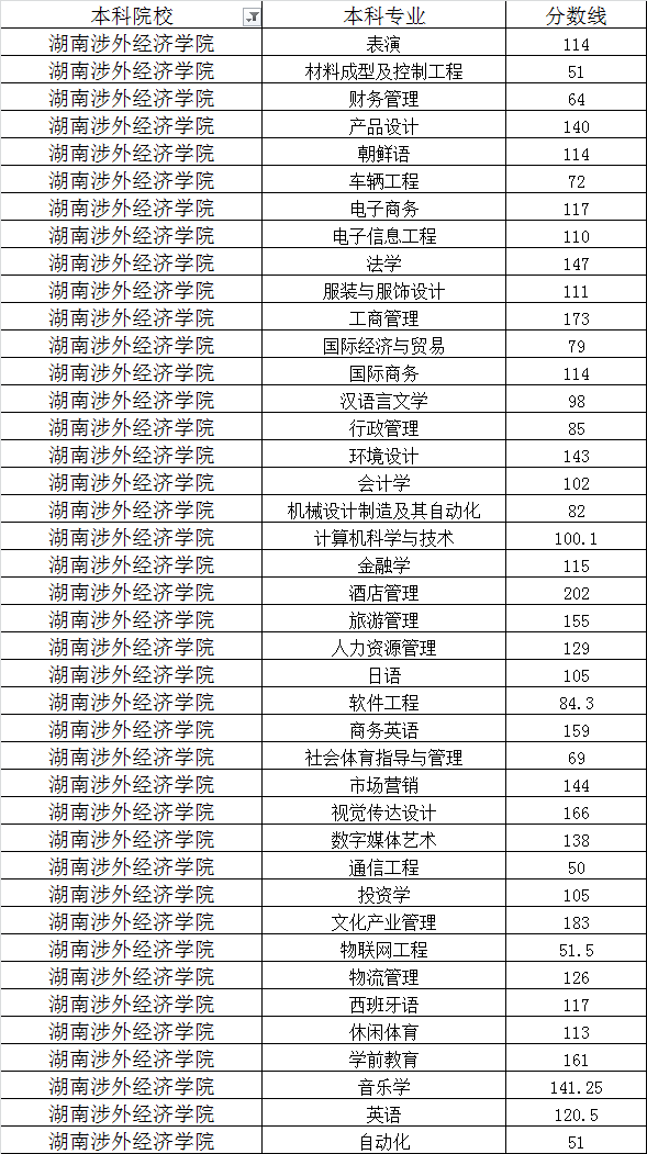 湖南专升本 >录取分数线 > 2020年湖南涉外经济学院录取分数线