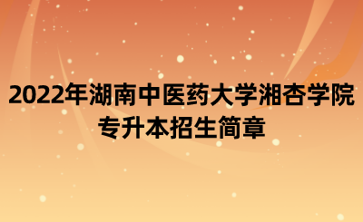 【导读】同学们在找各个招生院校的招生简章,为了方便大家查询,这边为大家准备了2022年湖南中医药大学湘杏学院专升本招生简章,一起看看吧!